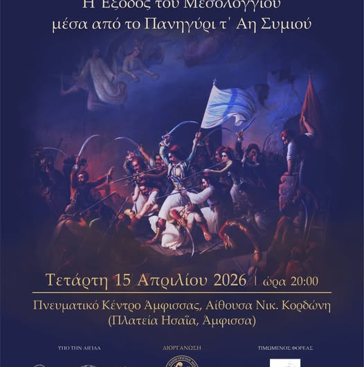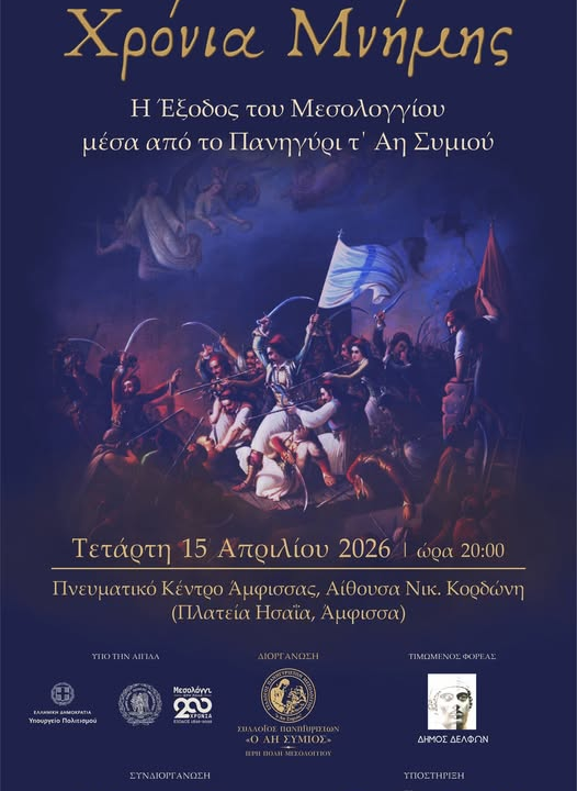 👉«200 Χρόνια Μνήμης: Η Έξοδος του Μεσολογγίου μέσα από το πανηγύρι τ’ Άη Συμιού»🗓️Τετάρτη 15 Απριλίου στο...