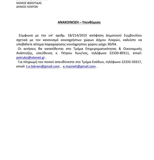 Καλούνται οι αγρότες – καλλιεργητές που επιθυμούν να κάνουν χρήση του δημοτικού δικτύου άρδευσης να υποβάλουν στην...