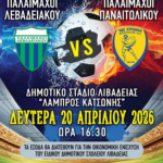 ⚽️Ο Δήμος Λεβαδέων στηρίζει τον φιλικό αγώνα παλαιμάχων «Κώστας Γκαλαμέλος», ανάμεσα στους παλαίμαχους Λεβαδειακού και Παναιτωλικού, που...