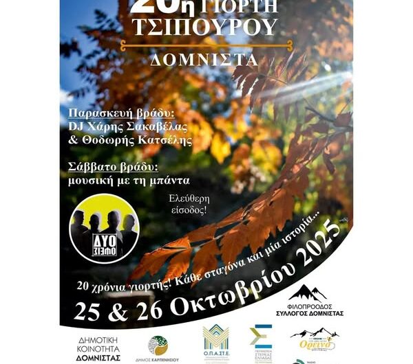 🥃 20η Γιορτή Τσίπουρου – Δομνίστα Ευρυτανίας🗓️ 24-26 Οκτωβρίου 2025📍 Η πιο μεθυστική παράδοση επιστρέφει για 20η...