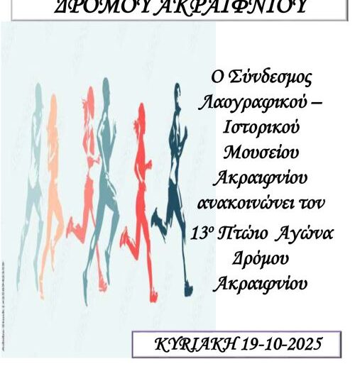 Το Ακραίφνιο θα φιλοξενήσει την Κυριακή 19 Οκτωβρίου 2025 τον 13ο Πτώιο Αγώνα Δρόμου Ακραιφνίου, μια διοργάνωση...