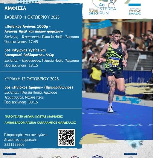 🏃🏻♂️Πλησιάζει η ώρα για το 4ο StereaRun – 5ος «Ηνίοχος Δρόμος»👉Συνεχίζονται οι εγγραφές έως την Παρασκευή 10...