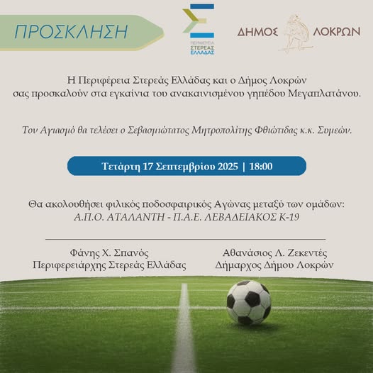 Ο Δήμος Λεβαδέων ενημερώνει ότι το Δημοτικό Στάδιο Λιβαδειάς «Λάμπρος Κατσώνης» θα παραμείνει κλειστό για το κοινό...
