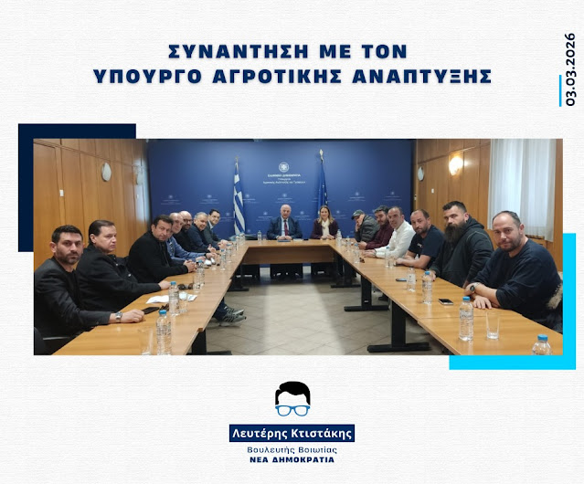 Την Τρίτη 3 Μαρτίου 2026, ο Βουλευτής Βοιωτίας κ. Λευτέρης Κτιστάκηςπραγματοποίησε συνάντηση στο Υπουργείο Αγροτικής Ανάπτυξης και...