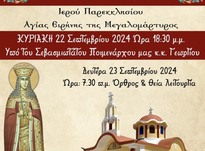 Το εσπέρας της Δευτέρας 16 Σεπτεμβρίου 2024, παραμονή της εορτής της Αγίας Σοφίας και των θυγατέρων της...