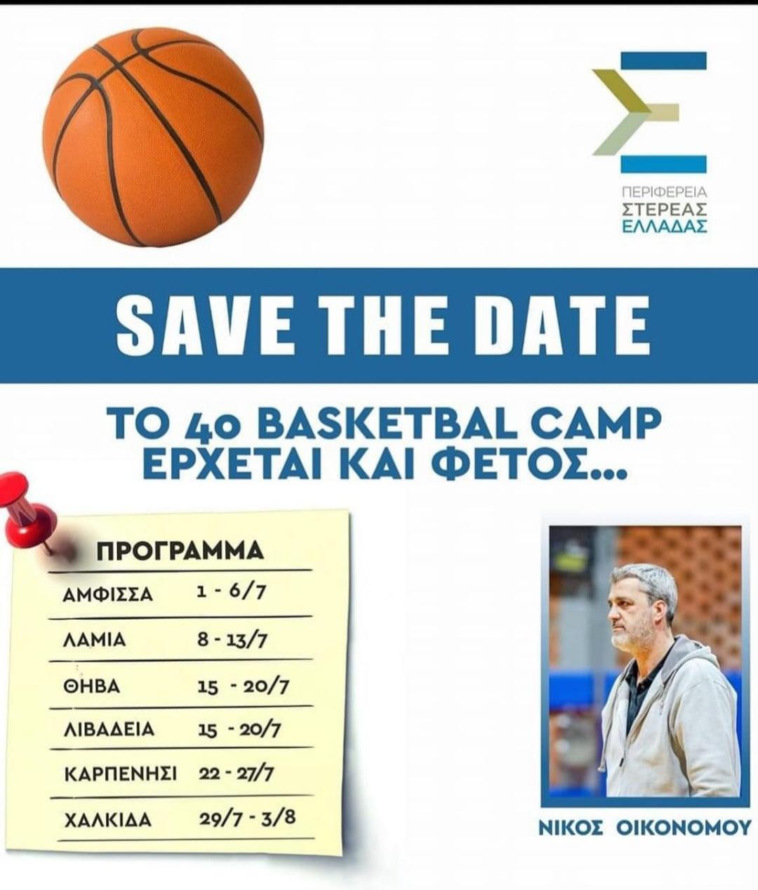 -Έναρξη στο Basketball Camp με τον Νίκο Οικονόμου (22-27 Ιουλίου) στο κλειστό γυμναστήριο Καρπενησίου: