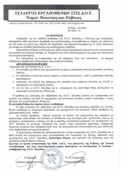 Ανακοίνωση εργαζομένων στις Δ.Ο.Υ. Ευβοίας & Βοιωτίας.– Δε θα γίνουμε εξιλαστήριο θύμα για να αποποιηθεί τις ευθύνες...