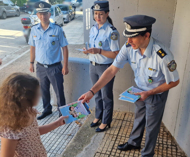 Ευχές για μια καλή σχολική χρονιά και ενημερωτικά φυλλάδια κυκλοφοριακής αγωγής και οδικής ασφάλειας, διένειμαν αστυνομικοί σήμερα...