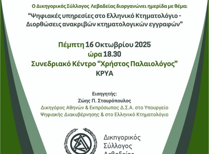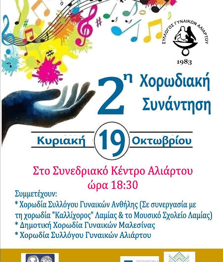 Ο Σύλλογος Γυναικών Αλιάρτου διοργανώνει την 2η Χορωδιακή Συνάντηση, την Κυριακή 19 Οκτωβρίου, στο Συνεδριακό Κέντρο Αλιάρτου,...