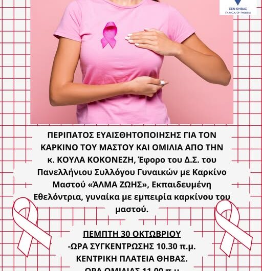 ΠΡΟΣΟΧΗ!!!! ΑΛΛΑΓΗ ΗΜΕΡΟΜΗΝΙΑΣ!!!! Η ΔΡΑΣΗ ΤΗΣ ΧΕΝ ΘΗΒΑΣ ΓΙΑ ΤΟΝ ΚΑΡΚΙΝΟ ΤΟΥ ΜΑΣΤΟΥ ΘΑ ΠΡΑΓΜΑΤΟΠΟΙΗΘΕΙ ΤΗΝ ΠΕΜΠΤΗ...