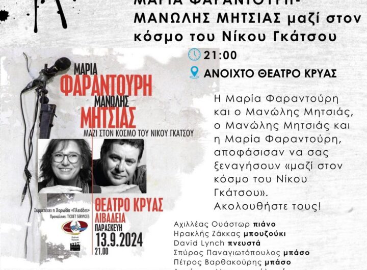 Την Τετάρτη 11 Σεπτεμβρίου 2024 και ώρα 20:30 στο θέατρο Μοσχοποδίου ο Τάσος Παπαϊωάννου και η ορχήστρα...