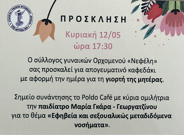Ε͟κ͟δ͟η͟λ͟ώ͟σ͟ε͟ι͟ς͟ Πρόσκληση για την Γιορτή της μητέρας admin 5 Μαΐου, 2024 Tags: Γιορτή της Μητέρας ΝΕΦΕΛΗ Σύλλογος Γυναικών Ορχομενού Post navigation Previous Κάλεσμα από το ΑκραίφνιοNext Ο Δήμος Ορχομενού για το κλειστό κύκλωμα ύδρευσης Αφήστε μια απάντηση Ακύρωση απάντησηςΗ ηλ. διεύθυνση σας δεν δημοσιεύεται. Τα υποχρεωτικά πεδία σημειώνονται με *Σχόλιο * Όνομα * Email * Ιστότοπος Αποθήκευσε το όνομά μου, email, και τον ιστότοπο μου σε αυτόν τον πλοηγό για την επόμενη φορά που θα σχολιάσω. Related Stories Δράση πρόληψης και προαγωγής υγείας στη Δωρίδα με τους «Γιατρούς του Κόσμου» Ε͟κ͟δ͟η͟λ͟ώ͟σ͟ε͟ι͟ς͟ Δράση πρόληψης και προαγωγής υγείας στη Δωρίδα με τους «Γιατρούς του Κόσμου» 16 Απριλίου, 2026 Ο Όμιλος Φίλων Θεάτρου Λιβαδειάς ανεβάζει την παράσταση “Εχθροί εξ Αίματος” του Αρκά Ε͟κ͟δ͟η͟λ͟ώ͟σ͟ε͟ι͟ς͟ Ο Όμιλος Φίλων Θεάτρου Λιβαδειάς ανεβάζει την παράσταση “Εχθροί εξ Αίματος” του Αρκά 15 Απριλίου, 2026 Ο Πολιτιστικός Σύλλογος Αρκίτσας ” Ο Κλείδωνας” αναβίωσε το έθιμο της «Ρωμάνας» Ε͟κ͟δ͟η͟λ͟ώ͟σ͟ε͟ι͟ς͟ Ο Πολιτιστικός Σύλλογος Αρκίτσας ” Ο Κλείδωνας” αναβίωσε το έθιμο της «Ρωμάνας» 14 Απριλίου, 2026