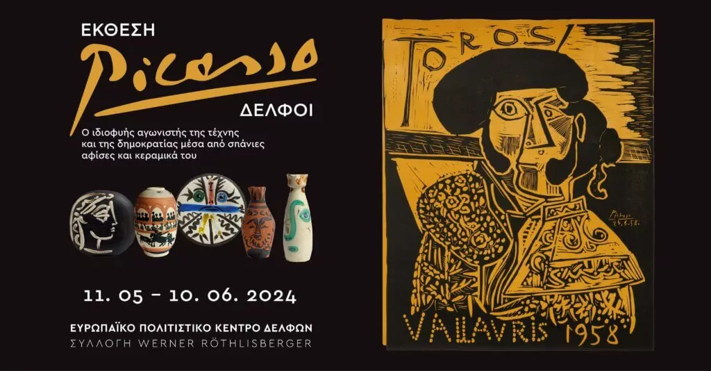 Tο Σάββατο 11 Μάϊου 2024 και ώρα 19:00 εγκαινιάζεται η έκθεση PABLO PICASSO. Ο ιδιοφυής αγωνιστής της τέχνης και της δημοκρατίας μέσα από σπάνιες αφίσες και κεραμικά τουστις εγκαταστάσεις του Ευρωπαϊκού Πολιτιστικού Κέντρου Δελφών (Ε.Π.Κε.Δ.) στους Δελφούς.
