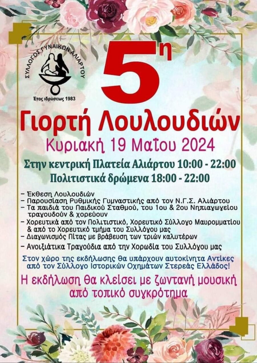 Ε͟κ͟δ͟η͟λ͟ώ͟σ͟ε͟ι͟ς͟ 5η Γιορτή Λουλουδιών στην Αλίαρτο admin 14 Μαΐου, 2024 Την 5η Γιορτή Λουλουδιών, διοργανώνει ο Σύλλογος Γυναικών Αλιάρτου την Κυριακή 19 Μαϊου, στην κεντρική πλατεία της πόλης. Tags: 5η Γιορτή Λουλουδιών στην Αλίαρτο Post navigation Previous 13ος Ποδηλατικός Γύρος ΑλιάρτουNext Μουλκιώτης”Πως μια προοδευτική Ευρώπη θα επηρεάσει την εργασία στην Ελλάδα” Αφήστε μια απάντηση Ακύρωση απάντησηςΗ ηλ. διεύθυνση σας δεν δημοσιεύεται. Τα υποχρεωτικά πεδία σημειώνονται με *Σχόλιο * Όνομα * Email * Ιστότοπος Αποθήκευσε το όνομά μου, email, και τον ιστότοπο μου σε αυτόν τον πλοηγό για την επόμενη φορά που θα σχολιάσω. Related Stories Ο Όμιλος Φίλων Θεάτρου Λιβαδειάς ανεβάζει την παράσταση “Εχθροί εξ Αίματος” του Αρκά Ε͟κ͟δ͟η͟λ͟ώ͟σ͟ε͟ι͟ς͟ Ο Όμιλος Φίλων Θεάτρου Λιβαδειάς ανεβάζει την παράσταση “Εχθροί εξ Αίματος” του Αρκά 15 Απριλίου, 2026 Ο Πολιτιστικός Σύλλογος Αρκίτσας ” Ο Κλείδωνας” αναβίωσε το έθιμο της «Ρωμάνας» Ε͟κ͟δ͟η͟λ͟ώ͟σ͟ε͟ι͟ς͟ Ο Πολιτιστικός Σύλλογος Αρκίτσας ” Ο Κλείδωνας” αναβίωσε το έθιμο της «Ρωμάνας» 14 Απριλίου, 2026 ➡️ Μια ξεχωριστή βραδιά γεμάτη εθελοντισμό, αλληλεγγύη και κοινωνική προσφορά, την Τετάρτη στις 20:00 στον Πολυχώρο Πολιτισμού! Ε͟κ͟δ͟η͟λ͟ώ͟σ͟ε͟ι͟ς͟ ➡️ Μια ξεχωριστή βραδιά γεμάτη εθελοντισμό, αλληλεγγύη και κοινωνική προσφορά, την Τετάρτη στις 20:00 στον Πολυχώρο Πολιτισμού! 14 Απριλίου, 2026