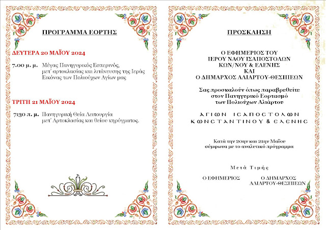 Β͇ο͇ι͇ω͇τ͇ί͇α͇ Γιορτάζουν οι Πολυούχοι Αλιάρτου admin 16 Μαΐου, 2024 Tags: Δήμος Αλιάρτου Θεσπιέων Post navigation Previous 24ος Ευχίδειος ΆθλοςNext Ιατρικό Συμπόσιο της Ελληνικής Αντικαρκινικής Εταιρείας Λιβαδειάς Αφήστε μια απάντηση Ακύρωση απάντησηςΗ ηλ. διεύθυνση σας δεν δημοσιεύεται. Τα υποχρεωτικά πεδία σημειώνονται με *Σχόλιο * Όνομα * Email * Ιστότοπος Αποθήκευσε το όνομά μου, email, και τον ιστότοπο μου σε αυτόν τον πλοηγό για την επόμενη φορά που θα σχολιάσω. Related Stories Πάσχα 2026 Β͇ο͇ι͇ω͇τ͇ί͇α͇ Πάσχα 2026 15 Απριλίου, 2026 Μουλκιώτης:Φιάσκο η πληρωμή των αγροτικών ενισχύσεων της 7ης Απριλίου Β͇ο͇ι͇ω͇τ͇ί͇α͇ Μουλκιώτης:Φιάσκο η πληρωμή των αγροτικών ενισχύσεων της 7ης Απριλίου 15 Απριλίου, 2026 Κατάθεση αιτήσεων από τους αγρότες για τη χρήση του δικτύου άρδευσης Β͇ο͇ι͇ω͇τ͇ί͇α͇ Κατάθεση αιτήσεων από τους αγρότες για τη χρήση του δικτύου άρδευσης 15 Απριλίου, 2026