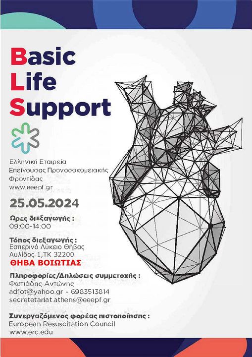 Σάββατο 25/5/2024 στο Εσπερινό Λύκειο Θήβας σεμινάριο πιστοποίησης από το ERC (Ευρωπαϊκό συμβούλιο καρδιοπνευμονικής αναζωογόνησης) στη βασική υποστήριξη ζωής και χρήση απινιδωτη.
