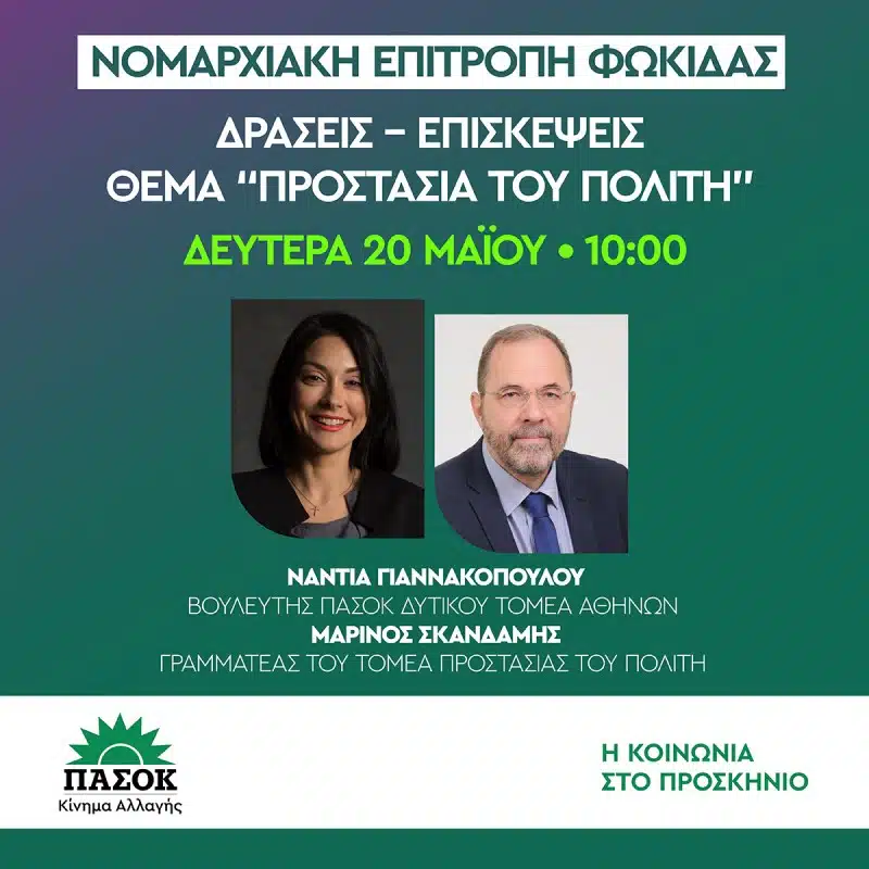 Τη Δευτέρα 20 Μαΐου θα πραγματοποιηθεί στη Φωκίδα η δράση της Νομαρχιακής Επιτροπής με θέμα «Προστασία του Πολίτη».