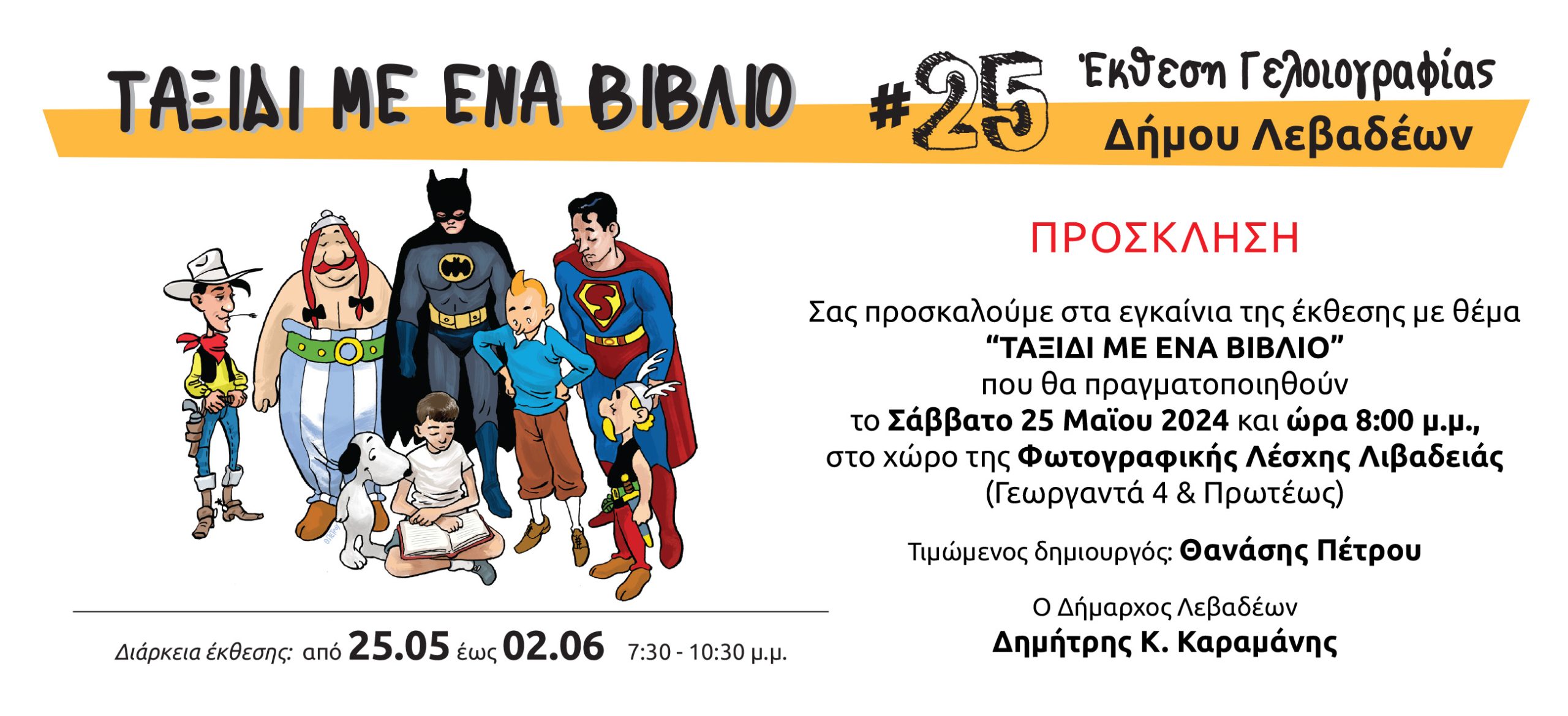 Ε͟κ͟δ͟η͟λ͟ώ͟σ͟ε͟ι͟ς͟ 25η Έκθεση Γελοιογραφίας Δήμου Λεβαδέων admin 22 Μαΐου, 2024 Tags: 25η Έκθεση Γελοιογραφίας Δήμου Λεβαδέων Δήμος Λεβαδέων Λιβαδειά Post navigation Previous Πρόσκληση σύγκλησης Δημοτικού ΣυμβουλίουNext Ευχαριστίες Δημάρχου Λεβαδέων προς κ. Δημήτριο Γεραγά Αφήστε μια απάντηση Ακύρωση απάντησηςΗ ηλ. διεύθυνση σας δεν δημοσιεύεται. Τα υποχρεωτικά πεδία σημειώνονται με *Σχόλιο * Όνομα * Email * Ιστότοπος Αποθήκευσε το όνομά μου, email, και τον ιστότοπο μου σε αυτόν τον πλοηγό για την επόμενη φορά που θα σχολιάσω. Related Stories Δράση πρόληψης και προαγωγής υγείας στη Δωρίδα με τους «Γιατρούς του Κόσμου» Ε͟κ͟δ͟η͟λ͟ώ͟σ͟ε͟ι͟ς͟ Δράση πρόληψης και προαγωγής υγείας στη Δωρίδα με τους «Γιατρούς του Κόσμου» 16 Απριλίου, 2026 Ο Όμιλος Φίλων Θεάτρου Λιβαδειάς ανεβάζει την παράσταση “Εχθροί εξ Αίματος” του Αρκά Ε͟κ͟δ͟η͟λ͟ώ͟σ͟ε͟ι͟ς͟ Ο Όμιλος Φίλων Θεάτρου Λιβαδειάς ανεβάζει την παράσταση “Εχθροί εξ Αίματος” του Αρκά 15 Απριλίου, 2026 Ο Πολιτιστικός Σύλλογος Αρκίτσας ” Ο Κλείδωνας” αναβίωσε το έθιμο της «Ρωμάνας» Ε͟κ͟δ͟η͟λ͟ώ͟σ͟ε͟ι͟ς͟ Ο Πολιτιστικός Σύλλογος Αρκίτσας ” Ο Κλείδωνας” αναβίωσε το έθιμο της «Ρωμάνας» 14 Απριλίου, 2026