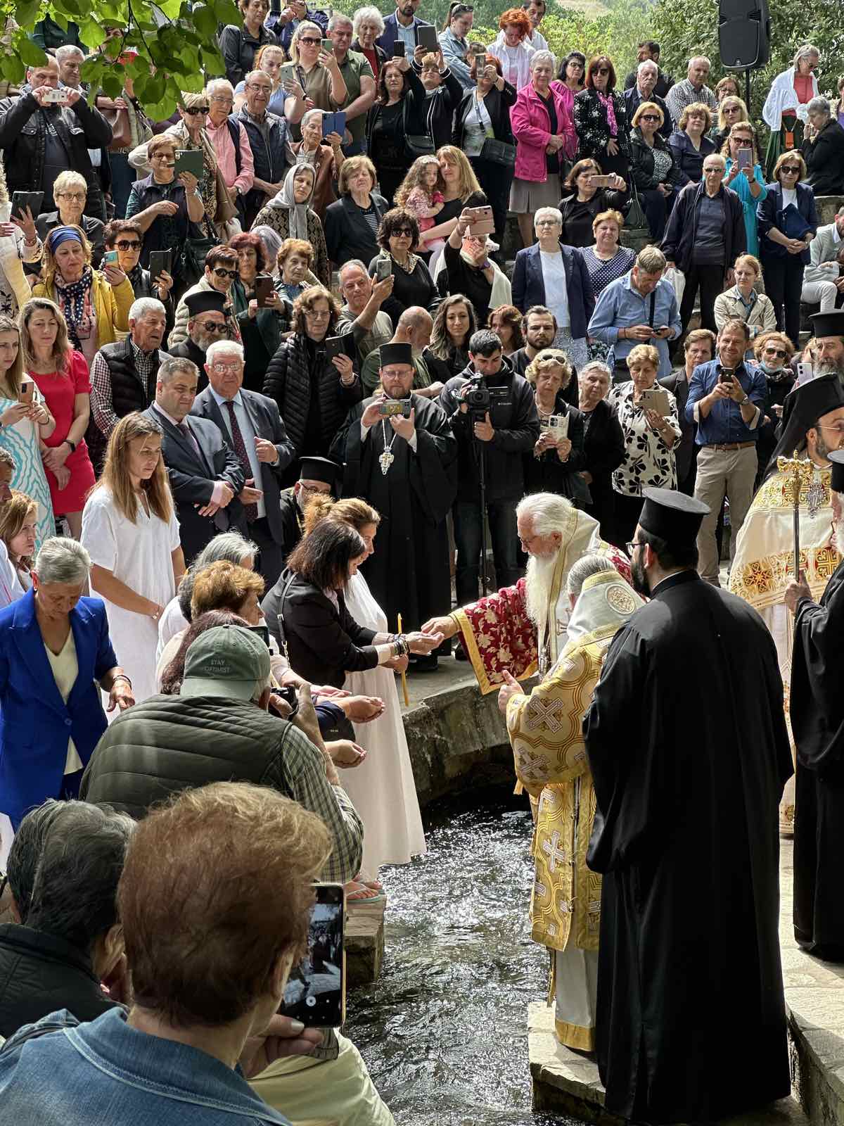 Το πρωί της Δευτέρας 20 Μαΐου στο Ιερό Βαπτιστηριακό και Προσκυνηματικό Ναό της Αγίας Λυδίας τελέστηκε η Θεία Λειτουργία προεξάρχοντος του Σεβασμιωτάτου Μητροπολίτη Θηβών, Λεβαδείας και Αυλίδος κ. Γεωργίου, ο οποίος και κήρυξε το θείο λόγο, συνιερουργούντος του Σεβ. Μητροπολίτη Φιλίππων, Νεαπόλεως και Θάσου κ. Στεφάνου και του Θεοφ. Επισκόπου Θεσπιών κ. Παύλου. Μετά τη Θεία Λειτουργία οι Σεβ. Αρχιερείς τέλεσαν το Μυστήριο του Βαπτίσματος και του Χρίσματος σε ενήλικους κατηχούμενους στο υπαίθριο Βαπτιστήριο στα νερά του ποταμού Ζυγάκτη.