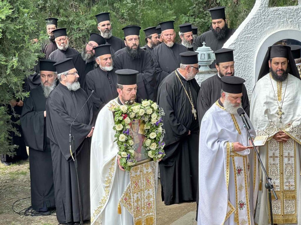 Την Κυριακή 19 Μαΐου 2024 ο Σεβασμιώτατος Ποιμενάρχης μας κ. Γεώργιος μετέβη στην Ιερά Μητρόπολη Φιλίππων, Νεαπόλεως και Θάσου, κατόπιν προσκλήσεως του επιχωρίου Μητροπολίτη κ. Στεφάνου, όπου συμμετείχε στις εορταστικές και λατρευτικές εκδηλώσεις για την εορτή της Αγίας Ισαποστόλου Λυδίας της Φιλιππησίας, οι οποίες πραγματοποιήθηκαν στο Ιερό Βαπτιστηριακό και Προσκυνηματικό Ναό της Αγίας στους αρχαίους Φιλίππους.