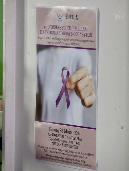Μία πολύ ενδιαφέρουσα ημερίδα διεξήχθη την Πέμπτη 23 Μαΐου στο Γενικό Νοσοκομείο Λιβαδειάς με αφορμή την Παγκόσμια Ημέρα Νοσηλευτών και με θέμα συζήτησης το τεράστιο πρόβλημα της ενδοοικογενειακής βίας και οι τρόποι αντιμετώπισής του.
