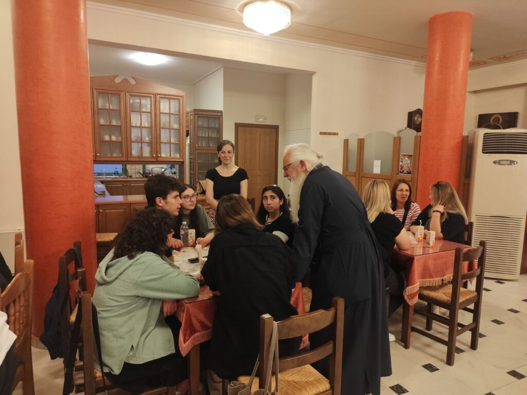 Τέλος, προσφέρθηκε στα παιδιά κέρασμα και ο Σεβασμιώτατος τους έδωσε ως ευλογία μια εικονίτσα της Παναγίας.