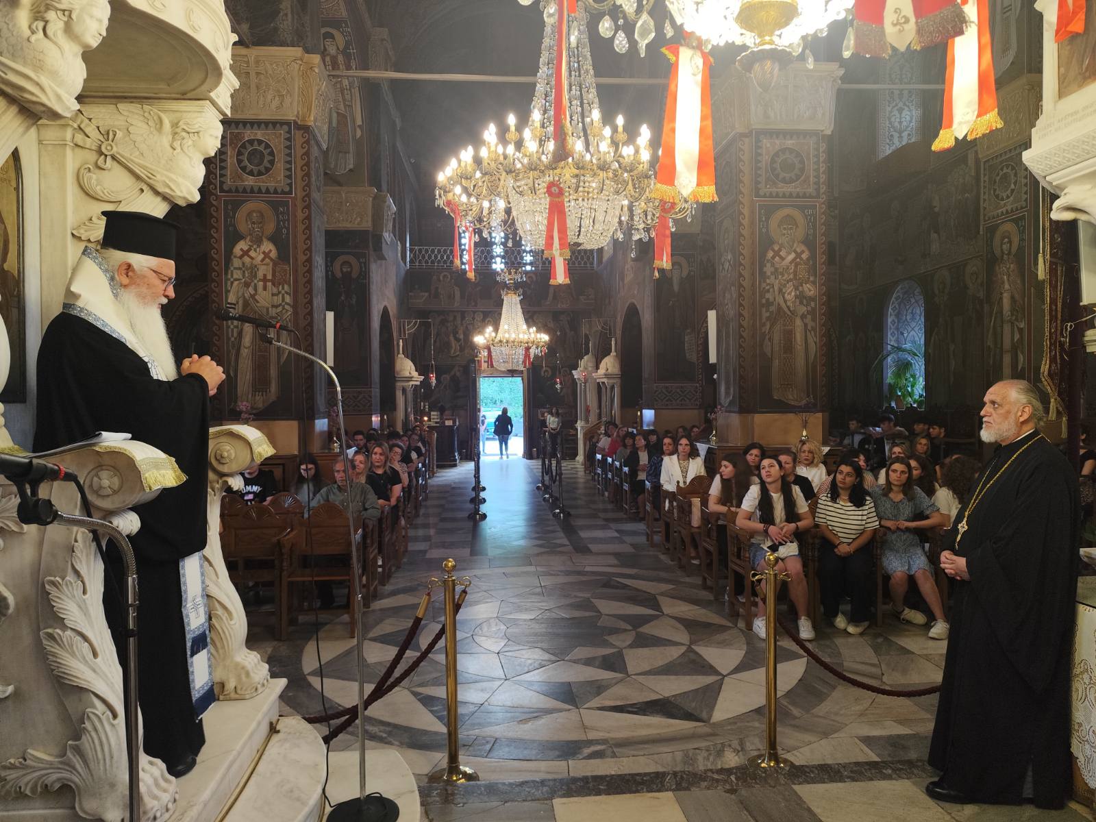Στην Ιερά Παράκληση χοροστάτησε ο Σεβασμιώτατος Ποιμενάρχης μας κ. Γεώργιος, ο οποίος προσευχήθηκε μαζί με όλους τους συμμετέχοντες, γονείς και εκπαιδευτικούς, για την ενίσχυση και τον φωτισμό των υποψηφίων των Πανελλαδικών εξετάσεων.