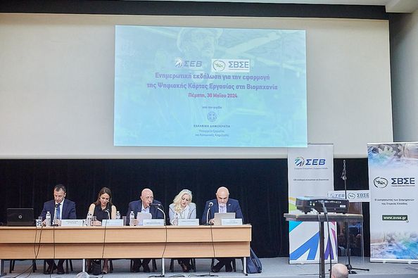 Την Πέμπτη 30 Μαΐου 2024 πραγματοποιήθηκε στο Συνεδριακό Κέντρο Θήβας ενημερωτική εκδήλωση του ΣΒΣΕ Σύνδεσμος Βιομηχανιών Στερεάς Ελλάδας σε συνεργασία με τον SEV Hellenic Federation of Enterprises με θέμα «Ψηφιακή Κάρτα Εργασίας στη Βιομηχανία» υπό την αιγίδα του Υπουργείου Εργασίας και Κοινωνικής Ασφάλισης.