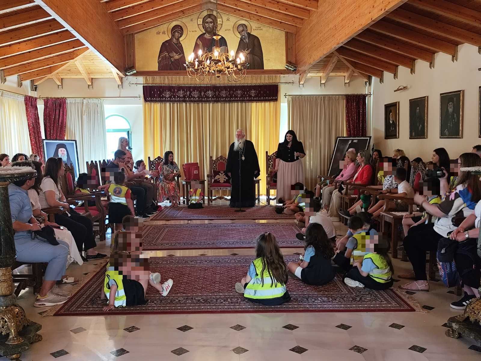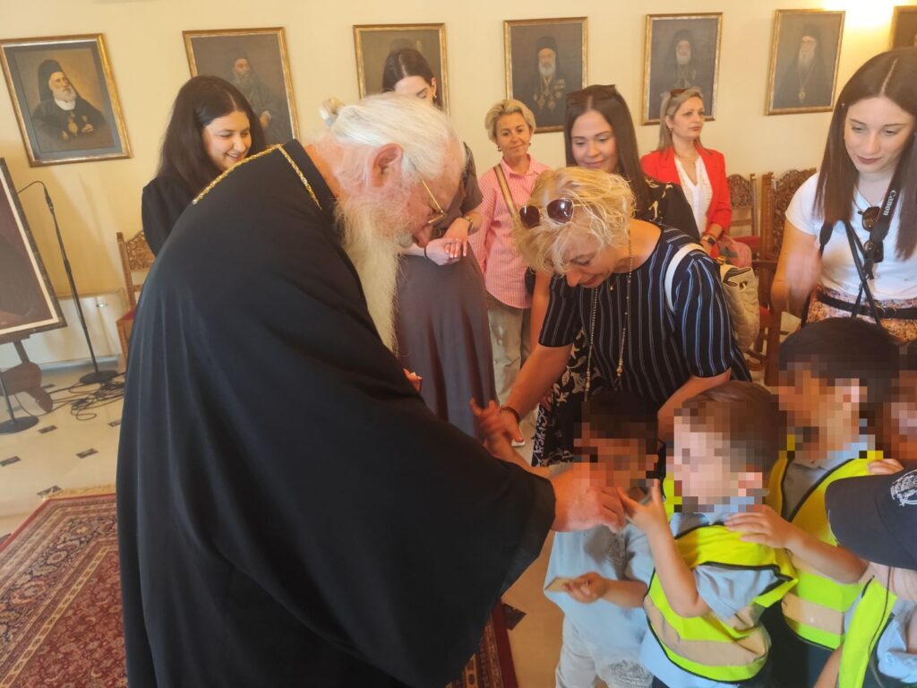 Την επίσκεψη των παιδιών των Βρεφονηπιακών Σταθμών “Ευαγγελισμός της Θεοτόκου” και “Η Ζωοδόχος Πηγή” Δηλεσίου του Ιδρύματος «Προστασία Μητρικών Έργων Σταμάτη και Ελένη Βαφειαδάκη» της Αρχιεπισκοπής Αθηνών, δέχτηκε ο Σεβασμιώτατος Ποιμενάρχης μας κ. Γεώργιος, στην αίθουσα Τελετών της Μητροπόλεως στη Λιβαδειά, σήμερα Παρασκευή 31 Μαΐου 2024. Τα παιδιά, τα οποία συνόδευαν η Διευθύντρια και οι παιδαγωγοί των Βρεφονηπιακών Σταθμών και οι γονείς τους, επισκέφθηκαν τη Λιβαδειά και την περιοχή της Κρύας και μετά την επίσκεψη στη Μητρόπολη θα συνέχιζαν την εκδρομή τους στην Ιερά Μονή του Οσίου Λουκά.