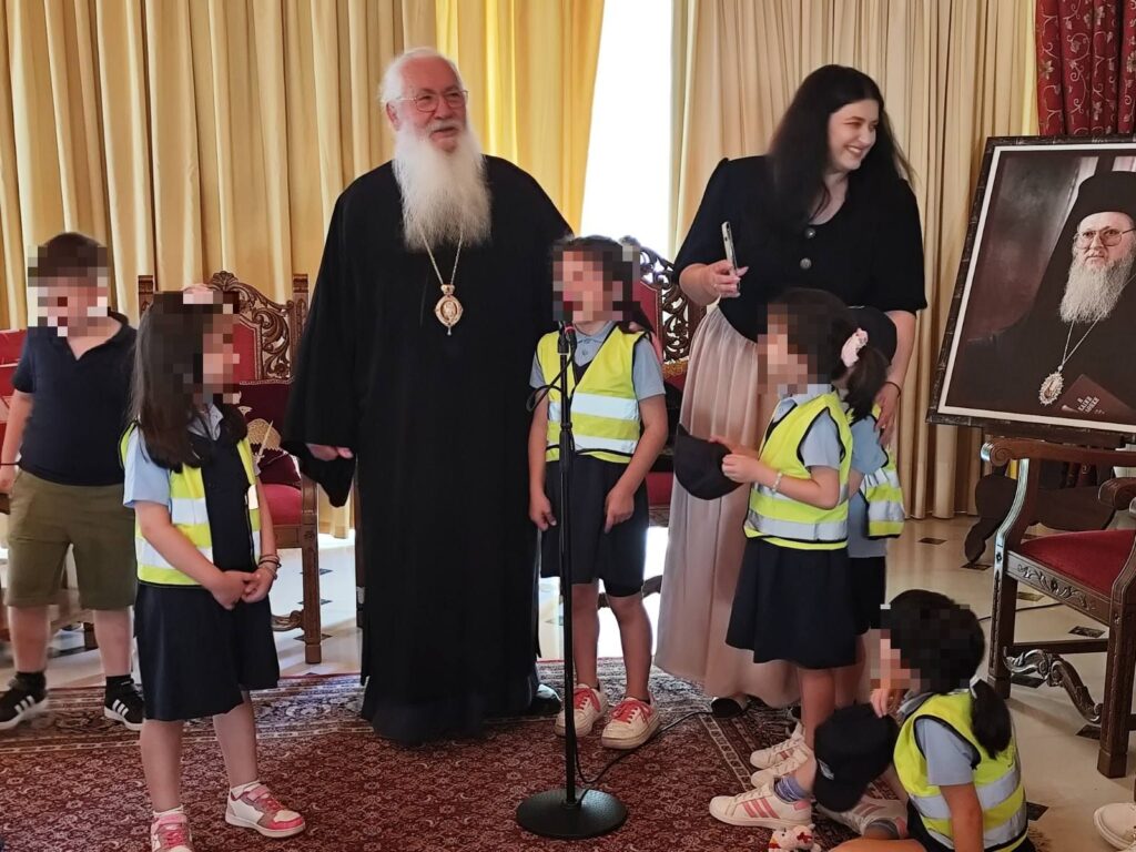 Ο Σεβασμιώτατος μίλησε στα μικρά παιδιά και τους έδωσε από μια εικονίτσα, γλυκά, καραμέλες και χυμούς, καθώς και βιβλία και παζλ για τα σχολεία τους. Τα παιδιά πρόσφεραν στον Σεβασμιώτατο μια ποδιά, που έχουν υφάνει στο εργαστήριο του σχολείου τους, και είπαν στον Σεβασμιώτατο για τις δραστηριότητες που κάνουν στο σχολείο τους. Η Διευθύντρια κ. Κατερίνα Ράπτη ευχαρίστησε, και εκ μέρους των παιδαγωγών και των γονέων, τον Σεβασμιώτατο Ποιμενάρχη μας κ. Γεώργιο για την υποδοχή και την όλη στήριξη στο έργο τους.