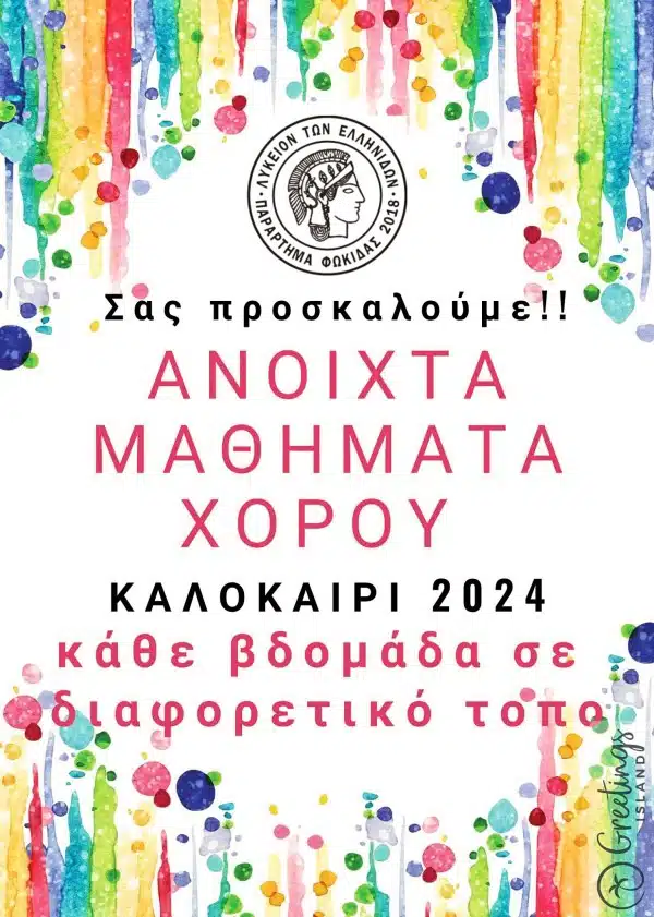 𝔰𝔱𝔢𝔯𝔢𝔞 Ανοιχτά Μαθήματα Χορού από το Λύκειον των Ελληνίδων Φωκίδας admin 5 Ιουνίου, 2024 Tags: Λύκειον Ελληνίδων Φωκίδας Post navigation Previous Παράταση στα δικαιολογητικά για την επιχορήγηση συλλόγων στη ΔωρίδαNext #τοσκίτσο Αφήστε μια απάντηση Ακύρωση απάντησηςΗ ηλ. διεύθυνση σας δεν δημοσιεύεται. Τα υποχρεωτικά πεδία σημειώνονται με *Σχόλιο * Όνομα * Email * Ιστότοπος Αποθήκευσε το όνομά μου, email, και τον ιστότοπο μου σε αυτόν τον πλοηγό για την επόμενη φορά που θα σχολιάσω. Related Stories Δήμος Λοκρών:Ενημέρωση 𝔰𝔱𝔢𝔯𝔢𝔞 Δήμος Λοκρών:Ενημέρωση 15 Απριλίου, 2026 👉Υποβολή πρότασης του Δήμου Δελφών σε πρόγραμμα για την ανάδειξη των σπηλαιολογικών οικοσυστημάτων 𝔰𝔱𝔢𝔯𝔢𝔞 👉Υποβολή πρότασης του Δήμου Δελφών σε πρόγραμμα για την ανάδειξη των σπηλαιολογικών οικοσυστημάτων 15 Απριλίου, 2026 ➡Με το Ιστορικό δρώμενο, σήμερα η έναρξη των εκδηλώσεων της 205ης Επετείου της Απελευθέρωσης του Κάστρου των Σαλώνων 𝔰𝔱𝔢𝔯𝔢𝔞 ➡Με το Ιστορικό δρώμενο, σήμερα η έναρξη των εκδηλώσεων της 205ης Επετείου της Απελευθέρωσης του Κάστρου των Σαλώνων 15 Απριλίου, 2026