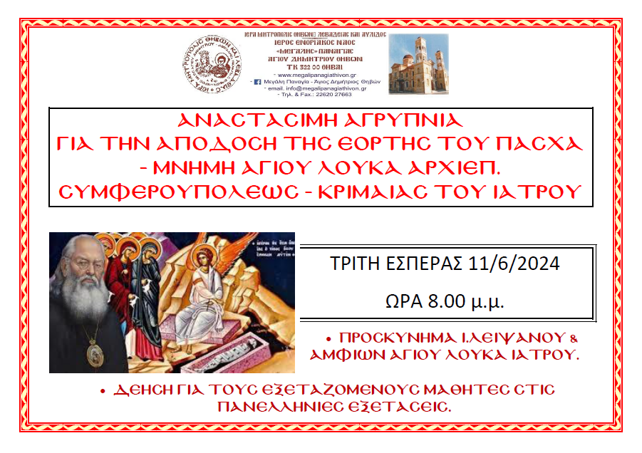 Β͇ο͇ι͇ω͇τ͇ί͇α͇ Aγρυπνίες στους ναούς της Βοιωτίας admin 10 Ιουνίου, 2024 Tags: Μητρόπολη Θηβών Λεβαδείας κ ΑΥλίδος Post navigation Previous Λειτουργία σχολείων στον Δήμο Διστόμου-Αράχωβας-ΑντίκυραςNext 5 συλλήψεις για ναρκωτικά σε περιοχές της Βοιωτίας Αφήστε μια απάντηση Ακύρωση απάντησηςΗ ηλ. διεύθυνση σας δεν δημοσιεύεται. Τα υποχρεωτικά πεδία σημειώνονται με *Σχόλιο * Όνομα * Email * Ιστότοπος Αποθήκευσε το όνομά μου, email, και τον ιστότοπο μου σε αυτόν τον πλοηγό για την επόμενη φορά που θα σχολιάσω. Related Stories Πάσχα 2026 Β͇ο͇ι͇ω͇τ͇ί͇α͇ Πάσχα 2026 15 Απριλίου, 2026 Μουλκιώτης:Φιάσκο η πληρωμή των αγροτικών ενισχύσεων της 7ης Απριλίου Β͇ο͇ι͇ω͇τ͇ί͇α͇ Μουλκιώτης:Φιάσκο η πληρωμή των αγροτικών ενισχύσεων της 7ης Απριλίου 15 Απριλίου, 2026 Κατάθεση αιτήσεων από τους αγρότες για τη χρήση του δικτύου άρδευσης Β͇ο͇ι͇ω͇τ͇ί͇α͇ Κατάθεση αιτήσεων από τους αγρότες για τη χρήση του δικτύου άρδευσης 15 Απριλίου, 2026