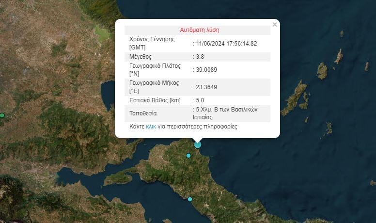 - Ο σεισμός μεγέθους 4 Ρίχτερ είχε επίκεντρο περιοχή 4 χιλιόμετρα Βόρεια των Βασιλικών και εστιακό βάθος τα 5 χιλιόμετρα