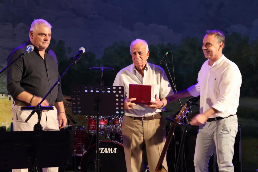 Πριν την έναρξη της συναυλίας και μετά από ένα σύντομο χαιρετισμό του κ. Δημήτρης Καραμάνης – Δήμαρχος Λεβαδέων και του Προέδρου της Κοινότητας κ. Θανάση Μίχου, τιμήθηκε για την προσφορά του ο επί χρόνια πρόεδρος κ. Χρήστος Καράτζαλης.