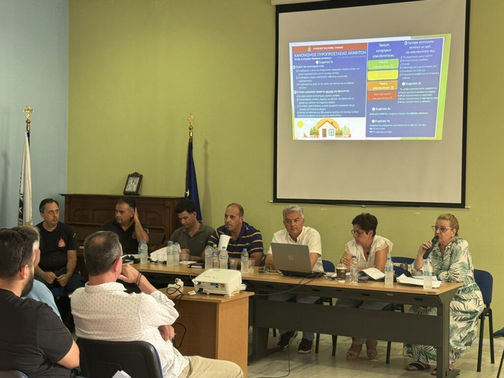 Ακολούθησε η παρουσίαση της Πυροσβεστικής διάταξης που είναι σε ισχύ, από τον κ. Κωνσταντίνο Τσίκα, Διοικητή ΔΙ.ΠΥ.Ν. Φωκίδας, ενώ η Αντιδήμαρχος κ. Αθηνά Χριστοδούλου ανέλυσε τις προβλέψεις του κανονισμού πυροπροστασίας ακινήτων εντός ή πλησίον δασικών εκτάσεων. Ο Αντιδήμαρχος κ. Χαρίλαος Αγαπητός αναφέρθηκε στο σχέδιο οργανωμένης προληπτικής απομάκρυνσης του πληθυσμού σε περίπτωση έκτακτης ανάγκης, ενώ ο Αντιδήμαρχος κ. Αθανάσιος Αδαμάκος μίλησε για τα προληπτικά μέτρα πυροπροστασίας ακινήτων εντός εγκεκριμένων ρυμοτομικών σχεδίων, εντός ορίων οικισμών ή σε ακτίνα 100 μ. από τα όρια των ανωτέρω περιοχών.