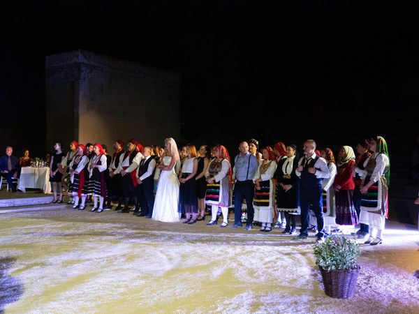 Επί σκηνής βρέθηκαν πάνω από 100 συντελεστές, χορωδίες, χορευτές και μουσικοί φορώντας τα καλά τους και περιμένοντας το μεγάλο γεγονός!! Είναι αληθεια…ο Χαραλάμπης Χαραλαμπόπουλος είπε το μεγάλο ΝΑΙ και στα 85 του παντρεύτηκε το Λενιώ, τον πρώτο του έρωτα!!