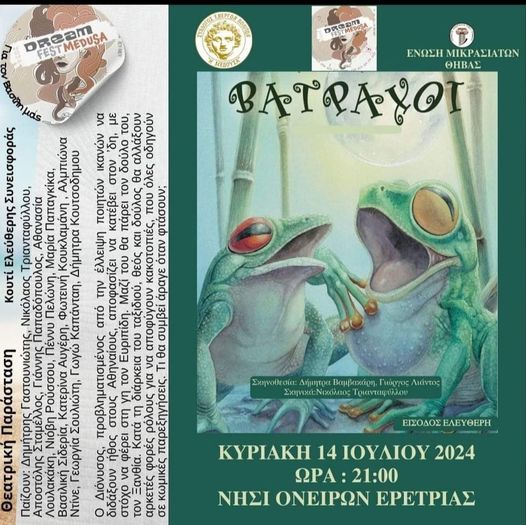 Το ταξίδι της θεατρικής ομάδας της Ένωσης Μικρασιατών Θήβας με τους “Βατράχους” ξεκινά με πρώτο σταθμό την Ερέτρια μετά από πρόσκληση στο φεστιβάλ Μέδουσα