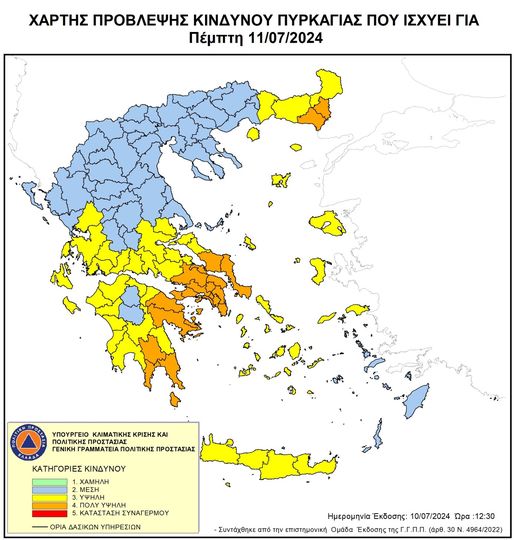 Σύμφωνα με το χάρτη κινδύνου πυρκαγιάς που ισχύει για αύριο Πέμπτη, 11 Ιουλίου 2024, ο Δήμος Δελφών ανήκει στην κατηγορία 3 (υψηλή κατηγορία κινδύνου), έχοντας θέσει το σύνολο των αρμόδιων υπηρεσιών του σε κατάσταση αυξημένης ετοιμότητας, με άμεση λήψη όλων των προβλεπόμενων μέτρων και δράσεων, λόγω της επικινδυνότητας εκδήλωσης και εξάπλωσης δασικών πυρκαγιών.