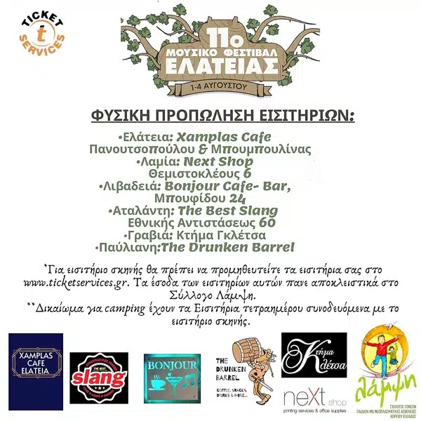 Προμηθεύσου το εισιτήριο σου ηλεκτρονικά στο: https://www.ticketservices.gr/event/mousiko-festival-elateias-2024/?lang=el