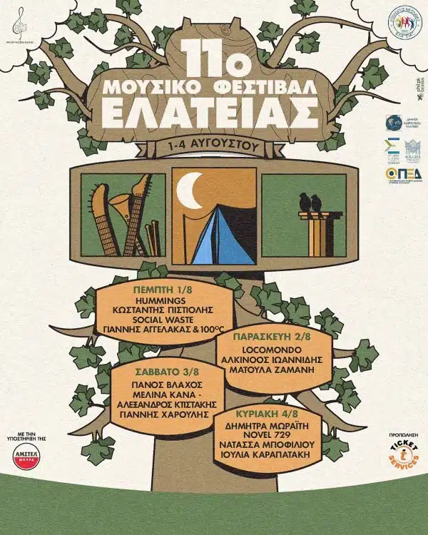 Με αγάπη στη φύση και τον άνθρωπο και με τρέλα για τη μουσική, ο Σύλλογος Νεολαίας Ελάτειας σας προσκαλεί στο 11ο Μουσικό Φεστιβάλ Ελάτειας “Λίγο όνειρο ακόμα”…