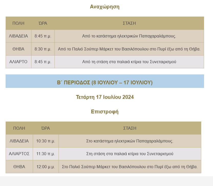 Β͇ο͇ι͇ω͇τ͇ί͇α͇ Η Γ’ Κατασκηνωτική Περίοδος Ξεκινά admin 15 Ιουλίου, 2024 ΔΡΟΜΟΛΟΓΙΑ ΛΕΩΦΟΡΕΙΩΝ Tags: Μητρόπολη Θηβών Λεβαδείας κ ΑΥλίδος Μητροπολίτης Θηβών Post navigation Previous Γενική απεργία στη Λοκρίδα στις 17 ΙούληNext Πανήγυρη Ιερού Ναού Προφήτη Ηλία Λεονταρίου Αφήστε μια απάντηση Ακύρωση απάντησηςΗ ηλ. διεύθυνση σας δεν δημοσιεύεται. Τα υποχρεωτικά πεδία σημειώνονται με *Σχόλιο * Όνομα * Email * Ιστότοπος Αποθήκευσε το όνομά μου, email, και τον ιστότοπο μου σε αυτόν τον πλοηγό για την επόμενη φορά που θα σχολιάσω. Related Stories Πρόγραμμα ονομαστηρίων Σεβασμιωτάτου Μητροπολίτου Θηβών, Λεβαδείας και Αυλίδος κ. Γεωργίου Β͇ο͇ι͇ω͇τ͇ί͇α͇ Πρόγραμμα ονομαστηρίων Σεβασμιωτάτου Μητροπολίτου Θηβών, Λεβαδείας και Αυλίδος κ. Γεωργίου 16 Απριλίου, 2026 Εορτή Ψηλαφήσεως Αποστόλου Θωμά Β͇ο͇ι͇ω͇τ͇ί͇α͇ Εορτή Ψηλαφήσεως Αποστόλου Θωμά 16 Απριλίου, 2026 Πάσχα 2026 Β͇ο͇ι͇ω͇τ͇ί͇α͇ Πάσχα 2026 15 Απριλίου, 2026