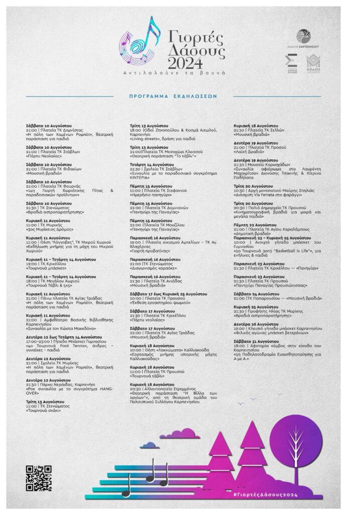 Αυτές οι γιορτές είναι μια ευκαιρία να απολαύσουμε πλούσια καλλιτεχνικά δρώμενα όπως μουσική, χορό, θέατρο και εικαστικές τέχνες, μέσα σε ένα μοναδικό φυσικό περιβάλλον. Το δάσος, με τη μαγευτική του ομορφιά και την ηρεμία που προσφέρει, δημιουργεί την ιδανική ατμόσφαιρα για να βρεθούμε όλοι μαζί και να ζήσουμε αξέχαστες στιγμές.