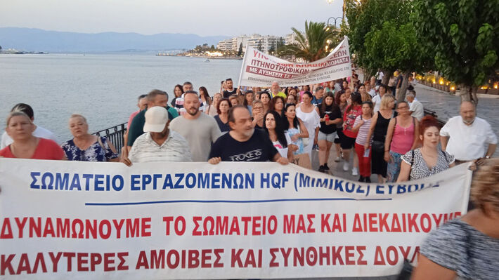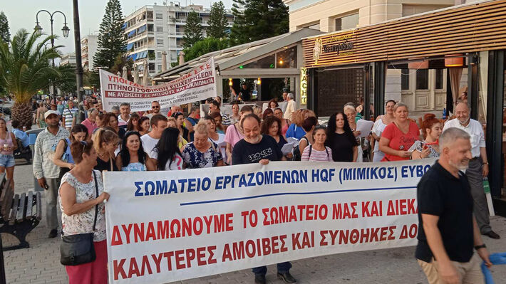 Με τον αγώνα, την ενότητα και την αποφασιστικότητα μας θα σπάσουμε την αδιαλλαξία της εργοδοσίας», διατράνωσαν οι εργαζόμενοι στο πτηνοσφαγείο της HQF – ΜΙΜΙΚΟΣ με δυναμική απεργιακή συγκέντρωση και πορεία στην παραλία Χαλκίδας, κλιμακώνοντας τον πολυήμερο απεργιακό αγώνα για αυξήσεις στους μισθούς και δικαιώματα.