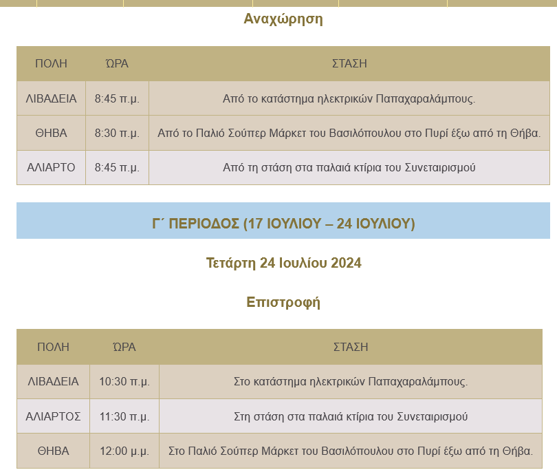 Β͇ο͇ι͇ω͇τ͇ί͇α͇ Η Δ’ Κατασκηνωτική Περίοδος Ξεκινά admin 23 Ιουλίου, 2024 ΔΡΟΜΟΛΟΓΙΑ ΛΕΩΦΟΡΕΙΩΝ Δ΄ ΠΕΡΙΟΔΟΣ (24 ΙΟΥΛΙΟΥ – 3 ΑΥΓΟΥΣΤΟΥ)Τετάρτη 24 Ιουλίου 2024 Αναχώρηση Tags: Εκκλησιαστικές Κατασκηνώσεις 2024 Μητροπολίτης Θηβών Post navigation Previous “Αίας” του Σοφοκλή στο “Φρύνιχο” των ΔελφώνNext #τοσκιτσο Αφήστε μια απάντηση Ακύρωση απάντησηςΗ ηλ. διεύθυνση σας δεν δημοσιεύεται. Τα υποχρεωτικά πεδία σημειώνονται με *Σχόλιο * Όνομα * Email * Ιστότοπος Αποθήκευσε το όνομά μου, email, και τον ιστότοπο μου σε αυτόν τον πλοηγό για την επόμενη φορά που θα σχολιάσω. Related Stories Μουλκιώτης: «Οι περιφέρειες αποδέχονται σιωπηρά τον παραγκωνισμό τους σε ρόλο θεατή, εν μέσω κρίσης ακρίβειας» Β͇ο͇ι͇ω͇τ͇ί͇α͇ Μουλκιώτης: «Οι περιφέρειες αποδέχονται σιωπηρά τον παραγκωνισμό τους σε ρόλο θεατή, εν μέσω κρίσης ακρίβειας» 16 Απριλίου, 2026 Πρόγραμμα ονομαστηρίων Σεβασμιωτάτου Μητροπολίτου Θηβών, Λεβαδείας και Αυλίδος κ. Γεωργίου Β͇ο͇ι͇ω͇τ͇ί͇α͇ Πρόγραμμα ονομαστηρίων Σεβασμιωτάτου Μητροπολίτου Θηβών, Λεβαδείας και Αυλίδος κ. Γεωργίου 16 Απριλίου, 2026 Εορτή Ψηλαφήσεως Αποστόλου Θωμά Β͇ο͇ι͇ω͇τ͇ί͇α͇ Εορτή Ψηλαφήσεως Αποστόλου Θωμά 16 Απριλίου, 2026