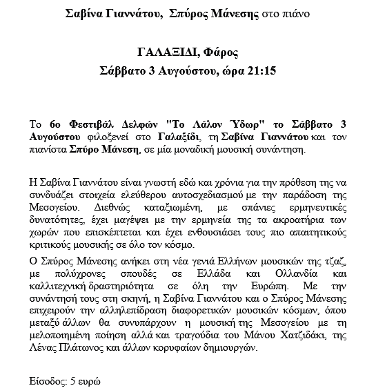 𝔏𝔦𝔰𝔱𝔢𝔫 𝔪𝔲𝔰𝔦𝔠 Ε͟κ͟δ͟η͟λ͟ώ͟σ͟ε͟ι͟ς͟ Σαβίνα Γιαννάτου & Σπύρος Μάνεσης στο 6ο Φεστιβάλ Δελφών “Το Λάλον Ύδωρ” admin 29 Ιουλίου, 2024 Χορηγοί επικοινωνίας:Viotia24.gr/εφημερίδα Βορεινή/Eρμής Διαφημιστική Πούλιος Tags: Φεστιβάλ Δελφών “Το Λάλον Ύδωρ” Post navigation Previous Ενημέρωση για την συντήρηση & λειτουργία του ΧΚΠ για την χειμερινή περίοδο 2024-2025Next Χρηματοδότηση για τη λειτουργία Στεγών Υποστηριζόμενης Διαβίωσης Αφήστε μια απάντηση Ακύρωση απάντησηςΗ ηλ. διεύθυνση σας δεν δημοσιεύεται. Τα υποχρεωτικά πεδία σημειώνονται με *Σχόλιο * Όνομα * Email * Ιστότοπος Αποθήκευσε το όνομά μου, email, και τον ιστότοπο μου σε αυτόν τον πλοηγό για την επόμενη φορά που θα σχολιάσω. Related Stories Ο Όμιλος Φίλων Θεάτρου Λιβαδειάς ανεβάζει την παράσταση “Εχθροί εξ Αίματος” του Αρκά Ε͟κ͟δ͟η͟λ͟ώ͟σ͟ε͟ι͟ς͟ Ο Όμιλος Φίλων Θεάτρου Λιβαδειάς ανεβάζει την παράσταση “Εχθροί εξ Αίματος” του Αρκά 15 Απριλίου, 2026 Ο Πολιτιστικός Σύλλογος Αρκίτσας ” Ο Κλείδωνας” αναβίωσε το έθιμο της «Ρωμάνας» Ε͟κ͟δ͟η͟λ͟ώ͟σ͟ε͟ι͟ς͟ Ο Πολιτιστικός Σύλλογος Αρκίτσας ” Ο Κλείδωνας” αναβίωσε το έθιμο της «Ρωμάνας» 14 Απριλίου, 2026 ➡️ Μια ξεχωριστή βραδιά γεμάτη εθελοντισμό, αλληλεγγύη και κοινωνική προσφορά, την Τετάρτη στις 20:00 στον Πολυχώρο Πολιτισμού! Ε͟κ͟δ͟η͟λ͟ώ͟σ͟ε͟ι͟ς͟ ➡️ Μια ξεχωριστή βραδιά γεμάτη εθελοντισμό, αλληλεγγύη και κοινωνική προσφορά, την Τετάρτη στις 20:00 στον Πολυχώρο Πολιτισμού! 14 Απριλίου, 2026