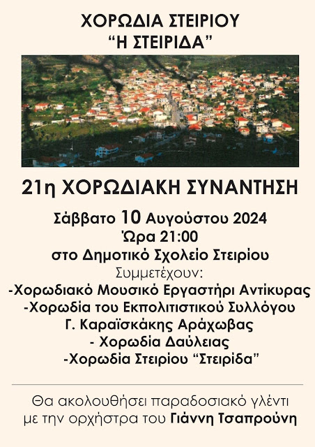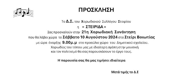 Β͇ο͇ι͇ω͇τ͇ί͇α͇ Ε͟κ͟δ͟η͟λ͟ώ͟σ͟ε͟ι͟ς͟ Στο Στείρι η 21η Χορωδιακή Συνάντηση admin 9 Αυγούστου, 2024 Tags: 21 Χορωδιακή Συνάντηση Στείρι Στειρίδα Post navigation Previous Εκδήλωση – συναυλία η ΚΟΒ Αταλάντης του ΚΚΕNext ΛΑΣΥ: Παρά λίγο ατύχημα με κολώνα φωτισμού στη ΔΕΗ στην Ερατεινή Αφήστε μια απάντηση Ακύρωση απάντησηςΗ ηλ. διεύθυνση σας δεν δημοσιεύεται. Τα υποχρεωτικά πεδία σημειώνονται με *Σχόλιο * Όνομα * Email * Ιστότοπος Αποθήκευσε το όνομά μου, email, και τον ιστότοπο μου σε αυτόν τον πλοηγό για την επόμενη φορά που θα σχολιάσω. Related Stories Μουλκιώτης: «Οι περιφέρειες αποδέχονται σιωπηρά τον παραγκωνισμό τους σε ρόλο θεατή, εν μέσω κρίσης ακρίβειας» Β͇ο͇ι͇ω͇τ͇ί͇α͇ Μουλκιώτης: «Οι περιφέρειες αποδέχονται σιωπηρά τον παραγκωνισμό τους σε ρόλο θεατή, εν μέσω κρίσης ακρίβειας» 16 Απριλίου, 2026 Δράση πρόληψης και προαγωγής υγείας στη Δωρίδα με τους «Γιατρούς του Κόσμου» Ε͟κ͟δ͟η͟λ͟ώ͟σ͟ε͟ι͟ς͟ Δράση πρόληψης και προαγωγής υγείας στη Δωρίδα με τους «Γιατρούς του Κόσμου» 16 Απριλίου, 2026 Πρόγραμμα ονομαστηρίων Σεβασμιωτάτου Μητροπολίτου Θηβών, Λεβαδείας και Αυλίδος κ. Γεωργίου Β͇ο͇ι͇ω͇τ͇ί͇α͇ Πρόγραμμα ονομαστηρίων Σεβασμιωτάτου Μητροπολίτου Θηβών, Λεβαδείας και Αυλίδος κ. Γεωργίου 16 Απριλίου, 2026