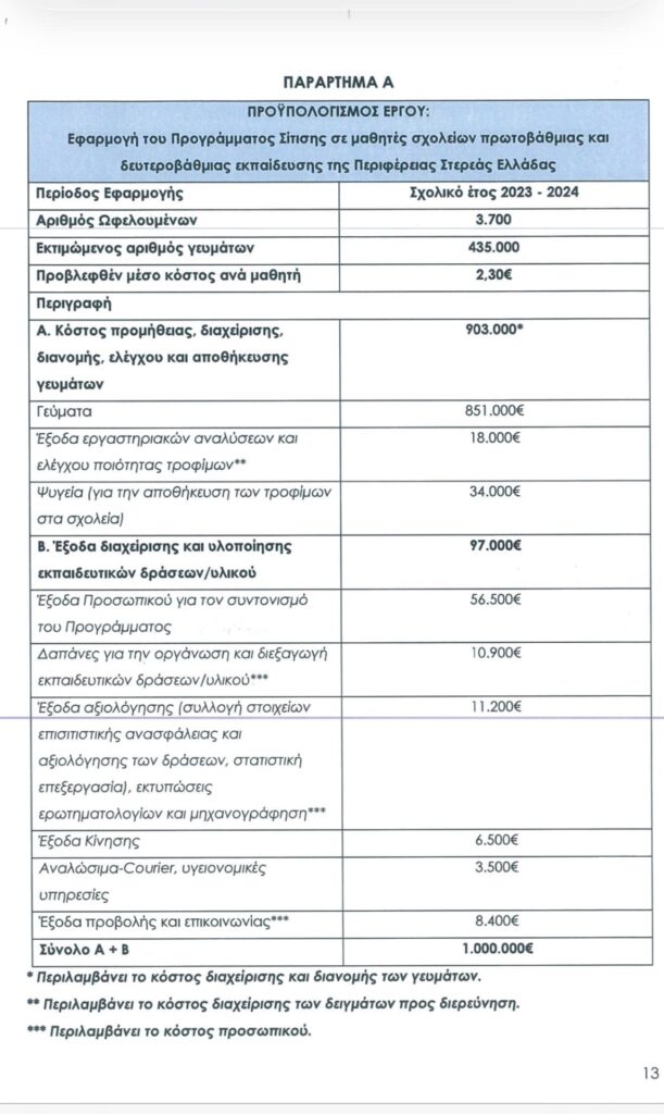 1) Ποια ειναι τα σχολεια στην Περιφερεια Στερεας Ελλαδας που εδωσε η Αστικη μη Κερδοσκοπικη «ΠΡΟΛΗΨΙΣ» το δεκατιανο με τοστ ή φρουτο κλπ για το σχολικο ετος 2023-24 και ελαβε 1.000.000 ευρω !