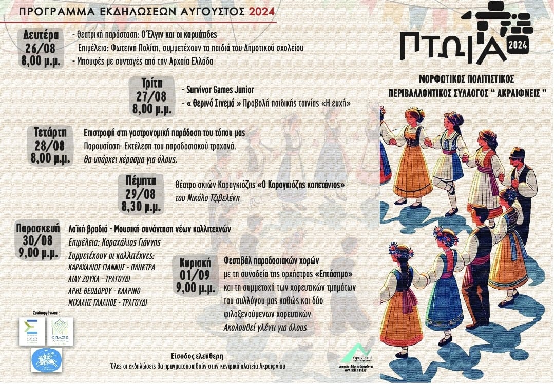 Β͇ο͇ι͇ω͇τ͇ί͇α͇ Ε͟κ͟δ͟η͟λ͟ώ͟σ͟ε͟ι͟ς͟ “Πτώια”2024 admin 12 Αυγούστου, 2024 Πλησιάζουμε στο τελος του καλοκαιριού… Όπως κάθε χρόνο έτσι και φέτος θα πραγματοποιηθούν οι εκδηλώσεις μας “Πτώια” την τελευταία εβδομάδα του Αυγούστου! Οι προετοιμασίες πολλές και η προσμονή μεγάλη….!!! Σας περιμένουμε!!!! #πτωια2024 #ο_Αύγουστος_μας #Ακραιφνείς Tags: Μορφωτικος Περιβαλλοντικος Πολιτιστικος Συλλογος "Ακραιφνεις" Πτωια 2024 Post navigation Previous Πρόβλημα υδροδότησης στον ΜπράλοNext #τοσκίτσο Αφήστε μια απάντηση Ακύρωση απάντησηςΗ ηλ. διεύθυνση σας δεν δημοσιεύεται. Τα υποχρεωτικά πεδία σημειώνονται με *Σχόλιο * Όνομα * Email * Ιστότοπος Αποθήκευσε το όνομά μου, email, και τον ιστότοπο μου σε αυτόν τον πλοηγό για την επόμενη φορά που θα σχολιάσω. Related Stories Μουλκιώτης: «Οι περιφέρειες αποδέχονται σιωπηρά τον παραγκωνισμό τους σε ρόλο θεατή, εν μέσω κρίσης ακρίβειας» Β͇ο͇ι͇ω͇τ͇ί͇α͇ Μουλκιώτης: «Οι περιφέρειες αποδέχονται σιωπηρά τον παραγκωνισμό τους σε ρόλο θεατή, εν μέσω κρίσης ακρίβειας» 16 Απριλίου, 2026 Δράση πρόληψης και προαγωγής υγείας στη Δωρίδα με τους «Γιατρούς του Κόσμου» Ε͟κ͟δ͟η͟λ͟ώ͟σ͟ε͟ι͟ς͟ Δράση πρόληψης και προαγωγής υγείας στη Δωρίδα με τους «Γιατρούς του Κόσμου» 16 Απριλίου, 2026 Πρόγραμμα ονομαστηρίων Σεβασμιωτάτου Μητροπολίτου Θηβών, Λεβαδείας και Αυλίδος κ. Γεωργίου Β͇ο͇ι͇ω͇τ͇ί͇α͇ Πρόγραμμα ονομαστηρίων Σεβασμιωτάτου Μητροπολίτου Θηβών, Λεβαδείας και Αυλίδος κ. Γεωργίου 16 Απριλίου, 2026