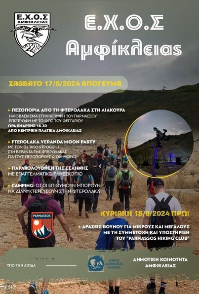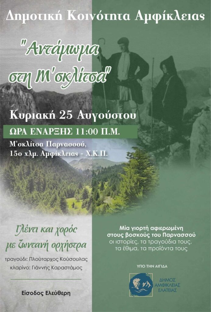 Ο δεκαπενταύγουστος πέρασε, οι διακοπές όμως δεν τελείωσαν. Γι’ αυτό και οι επιλογές για δημότες και επισκέπτες παραμένουν πολλές! Συνεχίζουμε λοιπόν, μεταξύ άλλων, με Θέατρο Σκιών, Μουσικές Βραδιές όλων των ειδών, τουρνουά μπάσκετ, πεζοπορία στον Παρνασσό με moon party, Βραδιά Πολιτισμού, παρουσίαση βιβλίου, σινεμά, βραδιά στο Φως του Φεγγαριού, παραδοσιακά πανηγύρια, Ντερνιτσιώτικο Αντάμωμα και Αντάμωμα στη Μ’σκλίτσα!