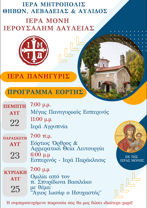 Β͇ο͇ι͇ω͇τ͇ί͇α͇ Πανήγυρις Ιεράς Μονής Ιερουσαλήμ Δαυλείας admin 16 Αυγούστου, 2024 Πανήγυρις Ιεράς Μονής Ιερουσαλήμ Δαυλείας Tags: Ιερά Μονή Ιερουσαλήμ Δαυλείας Μητροπολίτης Θηβών Post navigation Previous Eκδηλώσεις στον Δήμο Αμφίκλειας – Ελάτειας!Next Aπόπειρα αρπαγής παιδιού στα Πυρά Φωκίδας Αφήστε μια απάντηση Ακύρωση απάντησηςΗ ηλ. διεύθυνση σας δεν δημοσιεύεται. Τα υποχρεωτικά πεδία σημειώνονται με *Σχόλιο * Όνομα * Email * Ιστότοπος Αποθήκευσε το όνομά μου, email, και τον ιστότοπο μου σε αυτόν τον πλοηγό για την επόμενη φορά που θα σχολιάσω. Related Stories Μουλκιώτης: «Οι περιφέρειες αποδέχονται σιωπηρά τον παραγκωνισμό τους σε ρόλο θεατή, εν μέσω κρίσης ακρίβειας» Β͇ο͇ι͇ω͇τ͇ί͇α͇ Μουλκιώτης: «Οι περιφέρειες αποδέχονται σιωπηρά τον παραγκωνισμό τους σε ρόλο θεατή, εν μέσω κρίσης ακρίβειας» 16 Απριλίου, 2026 Πρόγραμμα ονομαστηρίων Σεβασμιωτάτου Μητροπολίτου Θηβών, Λεβαδείας και Αυλίδος κ. Γεωργίου Β͇ο͇ι͇ω͇τ͇ί͇α͇ Πρόγραμμα ονομαστηρίων Σεβασμιωτάτου Μητροπολίτου Θηβών, Λεβαδείας και Αυλίδος κ. Γεωργίου 16 Απριλίου, 2026 Εορτή Ψηλαφήσεως Αποστόλου Θωμά Β͇ο͇ι͇ω͇τ͇ί͇α͇ Εορτή Ψηλαφήσεως Αποστόλου Θωμά 16 Απριλίου, 2026